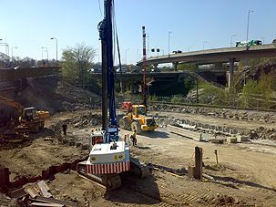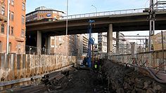 We can install Berlin walls with up 600 mm in diameter and water drilling with the unique and proprietary Safe Flow technology up to 300 mm. Berlin wall can be installed with unique Safe Flow Drilling system causing absolute minimum disruption to adjacent buildings and structures. Safe Flow system is the only proven system, which does not create shockwaves or over flush the drill hole. With Safe Flow system a water tight pipe wall can be installed and casings used directly for the bottom injection to seal the between the wall bottom and the rock. See article Safe Flow System Södertälje Lyftbro.