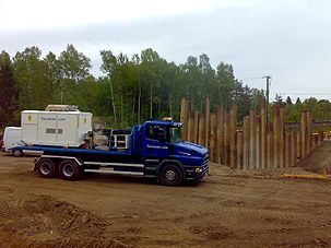 We offer wide variety of solutions to complete your sheet piling tasks. We also offer pre-drilling for rocky sheet piling conditions to eliminate harmful vibrations common with sheet piling to minimize the environmental and utility risks. Machines are equipped with 400 – 1500 KN hydraulic variable vibro-hammers whereas fixed leader of up to 30 meters can handle 27 meters elements in surface installed with maximum hydraulic power of 670 KW. Crane mounted MS24 with 250 KW hydraulic power is suitable for small offshore work. All machines have variable eccentric motion control systems and suitable for projects with demanding environmental requirements such as being in close proximity to buildings etc.